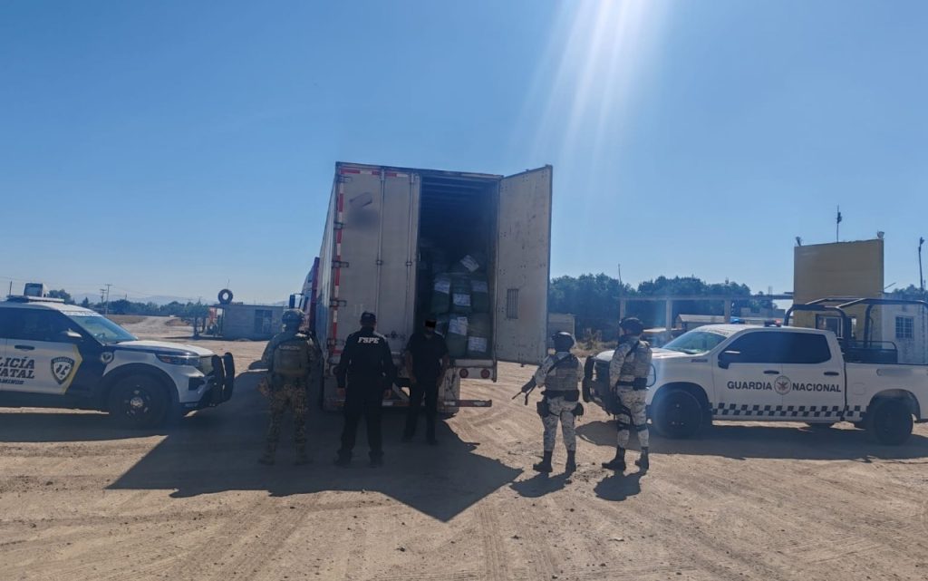 San Diego de la Unión, Gto., a 24 de noviembre de 2025.- La Secretaría de Seguridad y Paz, a través de las Fuerzas de Seguridad Pública del Estado (FSPE) aseguraron un tractocamión con 20 toneladas de mercancía de manufactura extranjera valuada en aproximadamente 2 millones 800 mil pesos y que no pudo ser acreditado su ingreso al país.