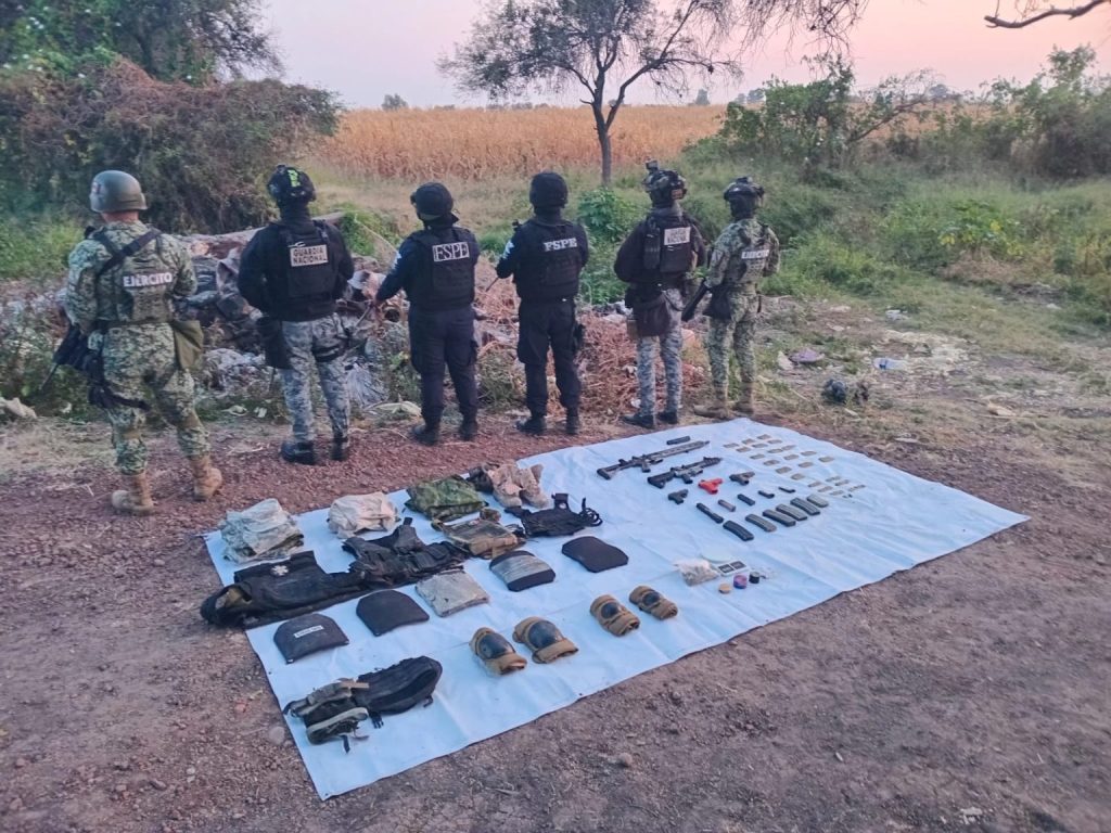 Asegura FSPE, DEFENSA y Guardia Nacional armamento y equipo táctico en Pénjamo