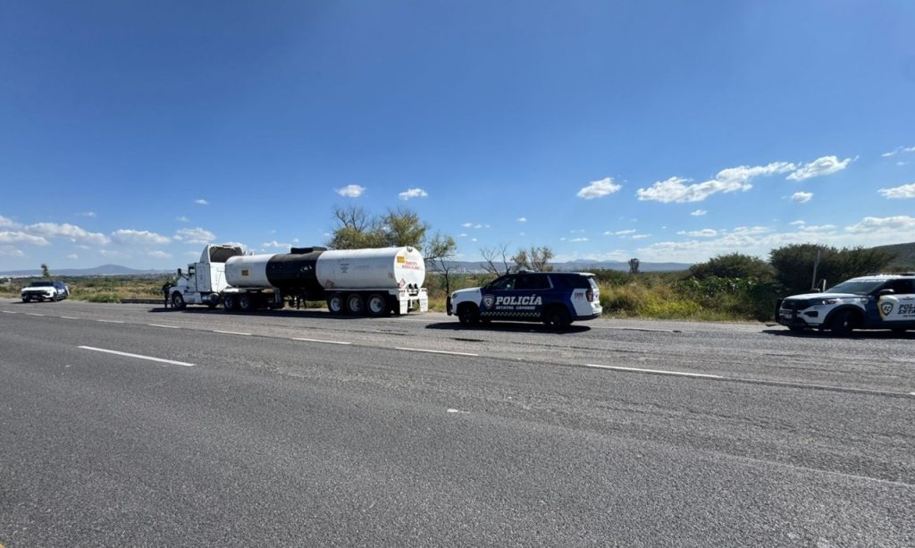 Apaseo el Grande, Gto., a 20 de noviembre de 2025.- Integrantes de la Policía Estatal de Caminos (PEC), adscrita a las Fuerzas de Seguridad Pública del Estado (FSPE) aseguraron un tractocamión de combustible con reporte de robo en la comunidad Calera de Amexhe.
