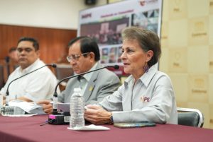 La directora del Instituto Municipal de Investigación, Planeación y Estadística (IMIPE), Alejandra Ojeda, también participó en la rueda de prensa...