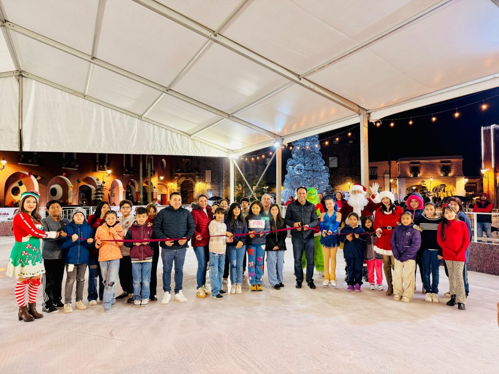 Salvatierra, Gto.- Con gran entusiasmo y la presencia de familias salvaterrenses y visitantes, el presidente municipal, José Daniel Sámano Jiménez, llevó a cabo la apertura de la Pista de Hielo con acceso gratuito en la explanada del Carmen para el disfrute de los asistentes en esta temporada navideña.