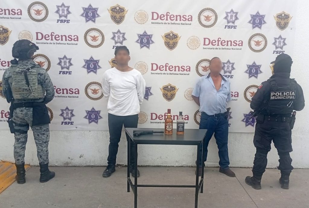 A los detenidos, identificados como Federico Jonathan “N”, de 27 años, y Filiberto “N”, de 67 años, se les aseguró una réplica de arma de fuego, el vehículo en el que se transportaban y los artículos presuntamente robados.