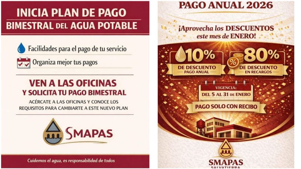 Por su parte, el director del SMAPAS, Mario Lara, informó que continúa vigente la campaña de pago anual, ofreciendo durante enero un 10 por ciento de descuento y en febrero un 5 por ciento, además de un 20 por ciento de reducción para adultos mayores y la posibilidad de realizar convenios con usuarios que presenten adeudos.