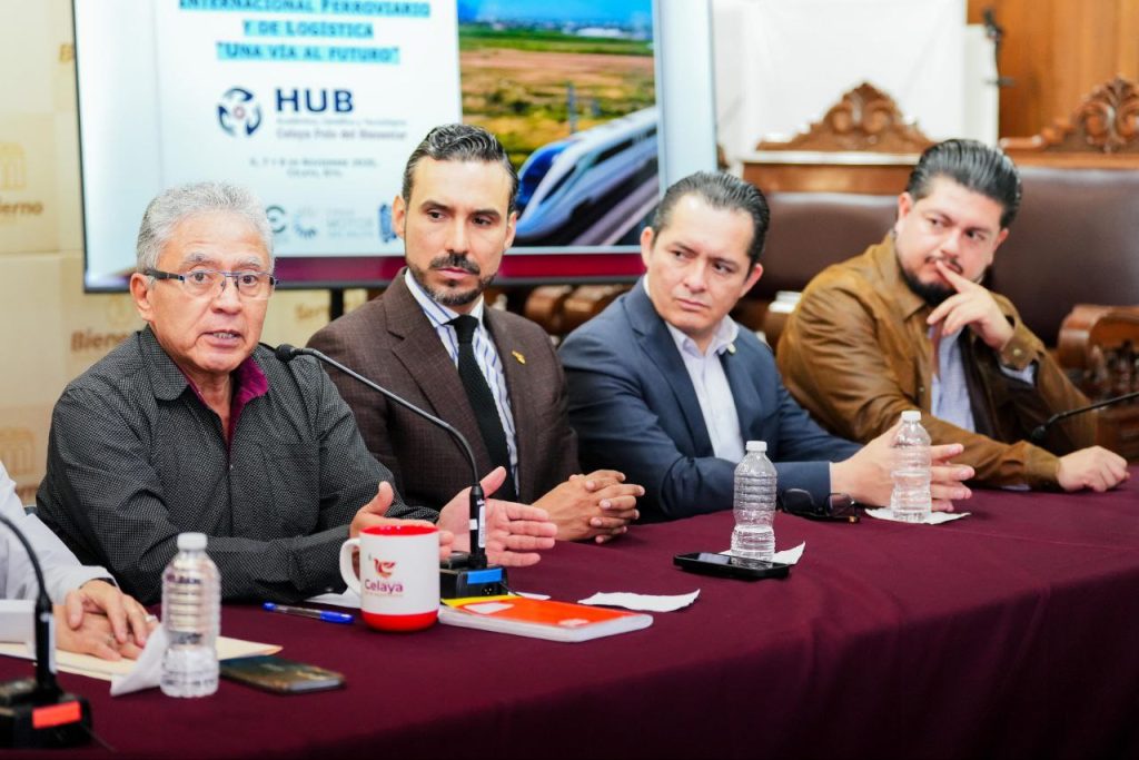 En la rueda de prensa de este jueves participaron los organizadores del Primer Congreso Internacional Ferroviario y de Logística “Una Vía al Futuro”, que se realizará en Celaya del 6 al 8 de noviembre, en el Auditorio Francisco Eduardo Tresguerras.