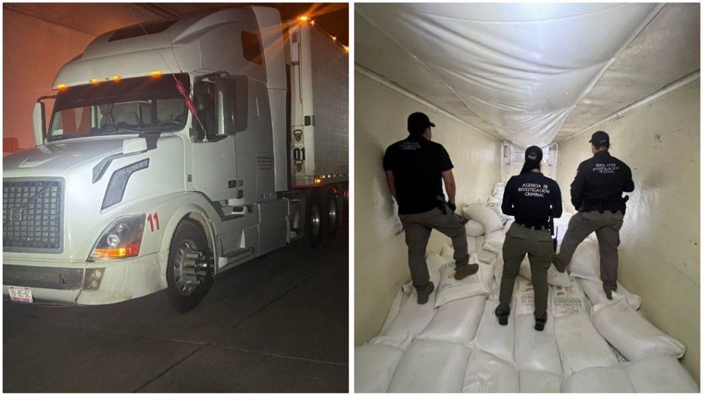 En la carretera Internacional México 15, a la altura del kilómetro 49 + 250, tramo Los Mochis – Navojoa, en el municipio de Ahome, los agentes de seguridad le marcaron el alto al conductor de un tractocamión acoplado a una caja refrigerada y, tras efectuar una inspección detallada de la unidad, hallaron siete costales que contenían la droga.