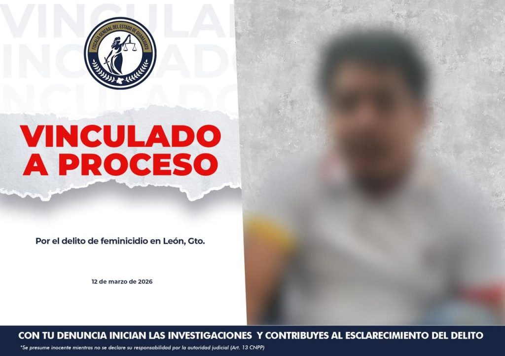 La Fiscalía General del Estado de Guanajuato, a través de la Unidad Especializada en Investigación de Homicidios, Regional “A”, obtuvo la vinculación a proceso de JUAN DIEGO “N” por el delito de feminicidio. De acuerdo con la investigación integrada en la carpeta de investigación, los hechos ocurrieron el 8 de marzo de 2026, cuando el imputado se encontraba en una habitación de un motel, en la ciudad de León, en compañía de la víctima.
