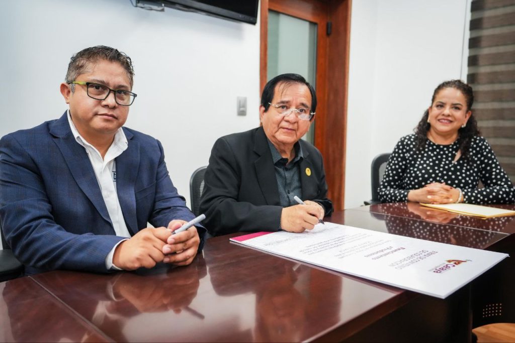El presidente municipal, Juan Miguel Ramírez, encabezó la firma de este convenio junto con el apoderado legar de la Caja Apaseo el Alto, Héctor Miguel Quintino, acompañado por la directora de Desarrollo Económico, Analy Rocha.