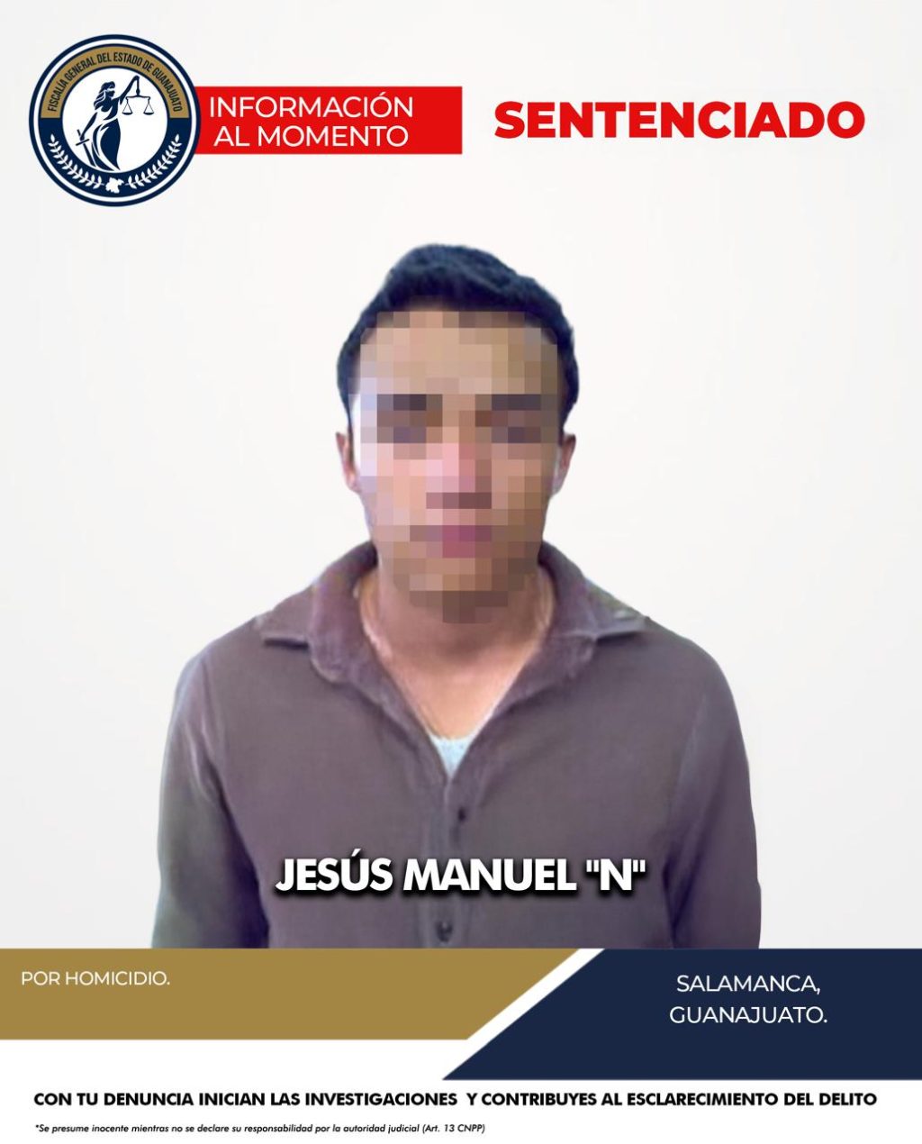 La Fiscalía General del Estado de Guanajuato logró obtener una sentencia condenatoria de 27 años de prisión en contra de JESÚS MANUEL “N” por el delito de homicidio calificado, ocurrido el 3 de septiembre de 2022, en la ciudad de Salamanca.