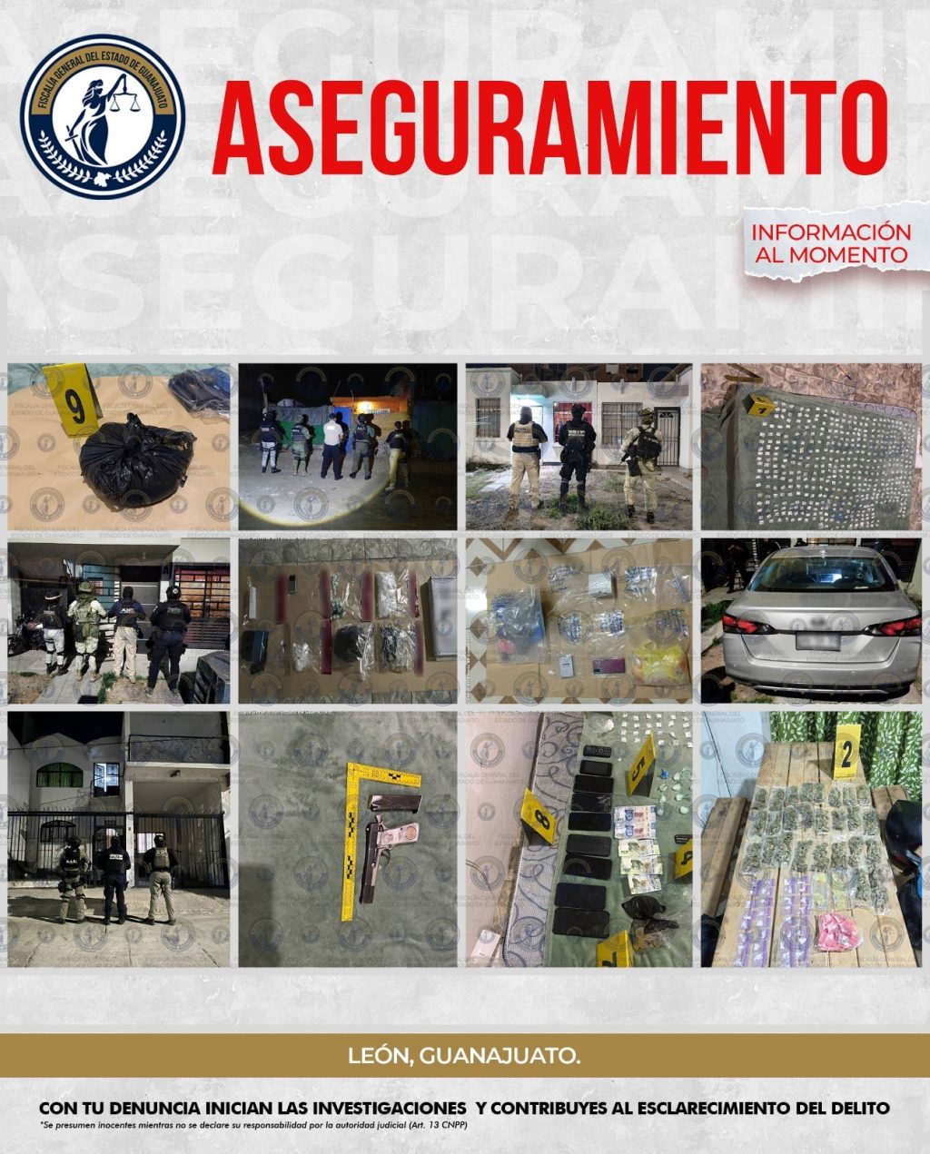La Fiscalía General del Estado de Guanajuato informa que, como resultado del fortalecimiento de las acciones de investigación impulsadas por denuncias anónimas, se llevaron a cabo operativos simultáneos en la ciudad de León, reafirmando el compromiso institucional de combatir la delincuencia y procurar justicia para la población guanajuatense.