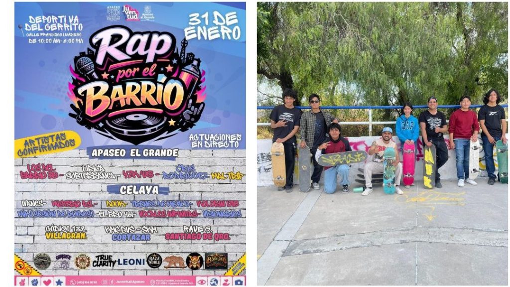 Apaseo el Grande, Gto., a 30 de enero de 2026.- Este sábado 31 de enero se llevará a cabo el evento “Rap por el Barrio”, una jornada de cultura urbana que reunirá música, arte y deporte en las canchas del barrio El Cerrito, de 10:00 de la mañana a 6:00 de la tarde, con acceso gratuito y ambiente familiar.
