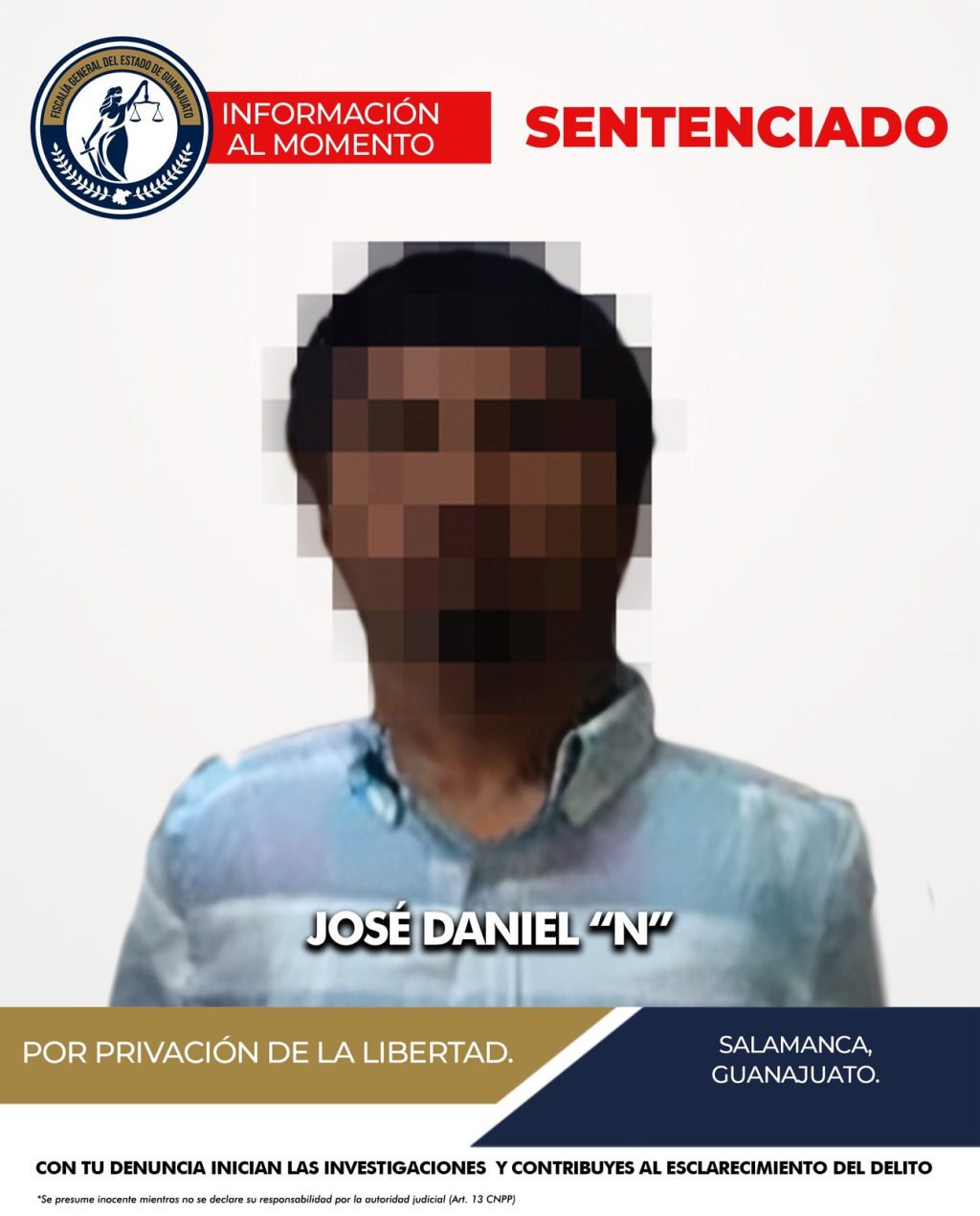 LA FISCALÍA DE GUANAJUATO OBTIENE SENTENCIA DE CÁRCEL PARA JOSÉ DANIEL “N” POR PRIVACIÓN DE LA LIBERTAD