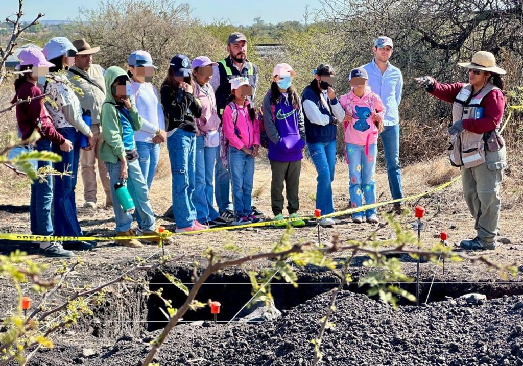 Apaseo el Grande, Gto., a 30 de enero de 2026.- Con el objetivo de las nuevas generaciones de Apaseo, conozcan la riqueza histórica que hay en Apaseo el Grande, un primer grupo de 10 niñas y niños, participaron en una visita guiada en la zona donde el Instituto Nacional de Antropología e Historia (INAH) realiza trabajos de salvamento arqueológico en el tramo correspondiente al proyecto del tren de pasajeros Querétaro–Irapuato.