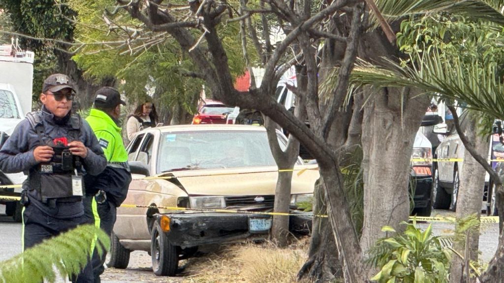 El suceso se reportó a las 9:30 a.m. de este lunes en la avenida Torres Landa, casi esquina con Jaspe. Agentes de seguridad y paramédicos que llegaron al lugar encontraron un automóvil Nissan Tsuru de color dorado impactado en el camellón central.