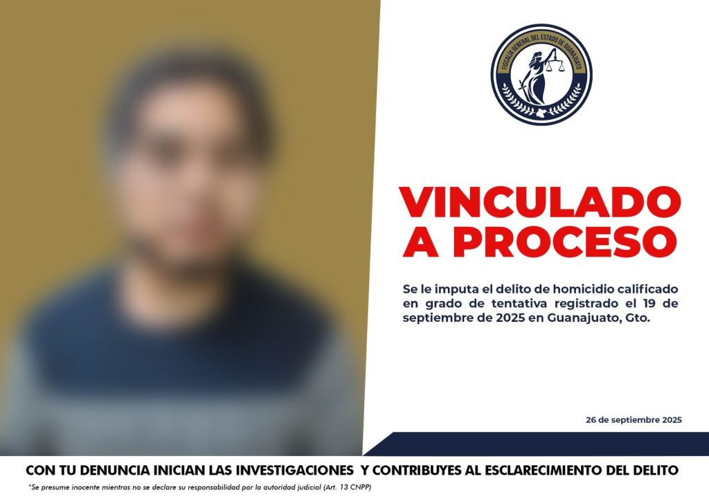 La Fiscalía General del Estado informa que, como resultado de los trabajos de investigación realizados por personal ministerial, pericial y policial, se obtuvo auto de vinculación a proceso penal en contra de EMILIANO “N”, por su probable participación en el delito de homicidio calificado en grado de tentativa.
