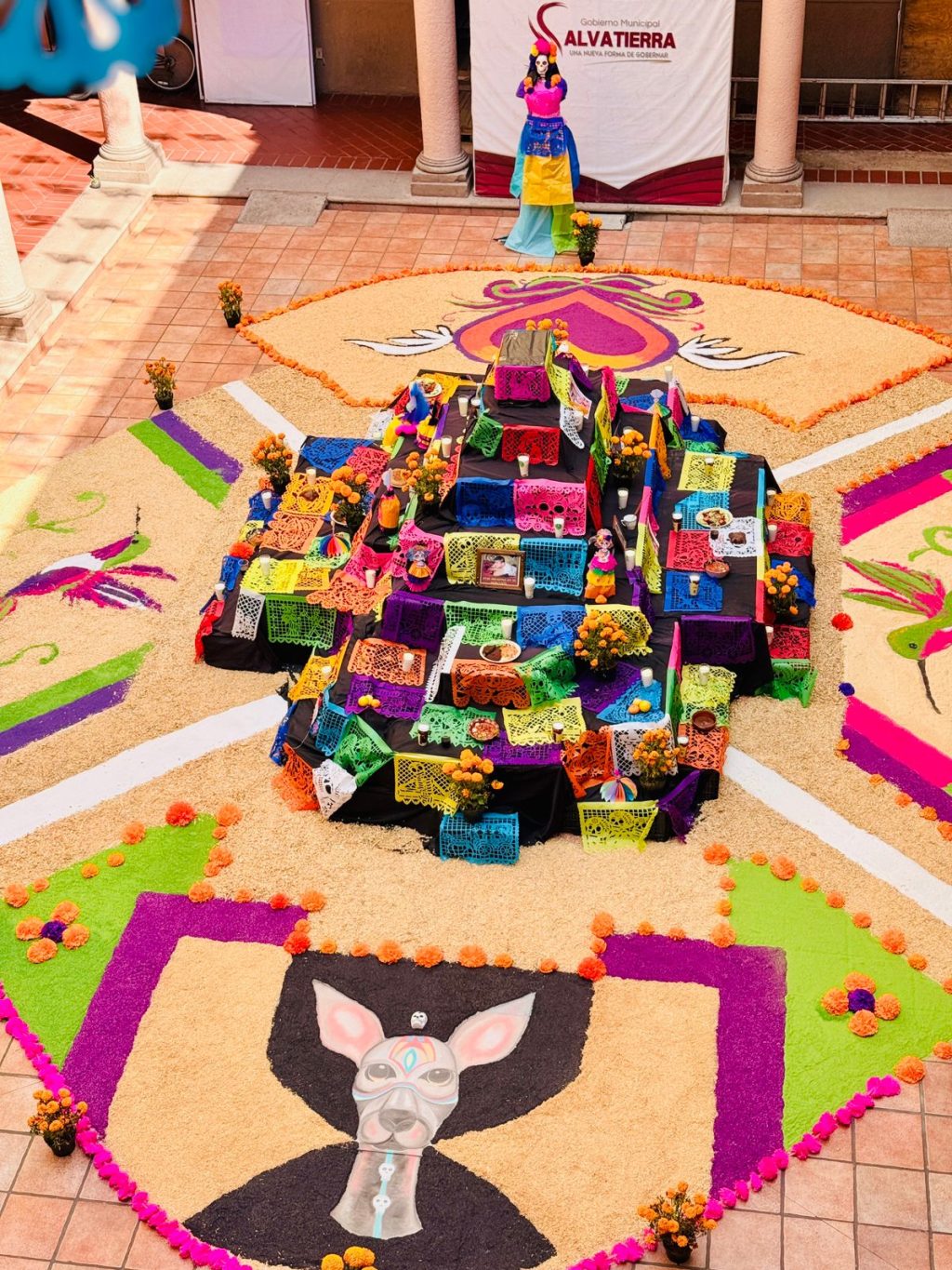 Desde temprana hora, el jardín principal cobró vida con el mercadito artesanal, donde talentosos creadores locales ofrecieron piezas únicas inspiradas en el Día de Muertos y la Noche de Brujas, elaborados con creatividad y profundo arraigo a las tradiciones. Mientras que el patio de la presidencia municipal albergó un vistoso altar de muertos de estructura piramidal, para el disfrute te propios y visitantes.